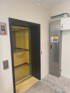 Our latest finished construction project offers a MRL gearless traction lift, serving 4 floors just a stones throw away from our office SE15.